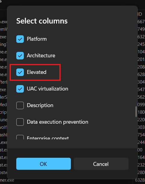 Check what is running as elevated