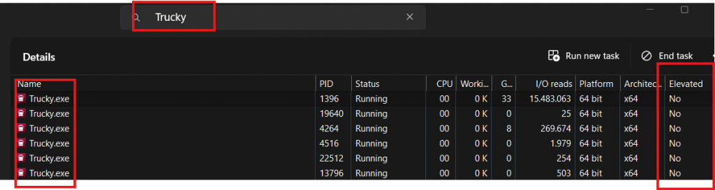 Check the Elevated column: if something says “Yes”, it’s running with elevated permissions and cause this problem.