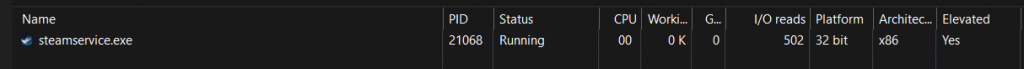 PLEASE NOTE steamservice.exe is normal running as Elevated because it’s a Windows Service: DON’T CHANGE IT