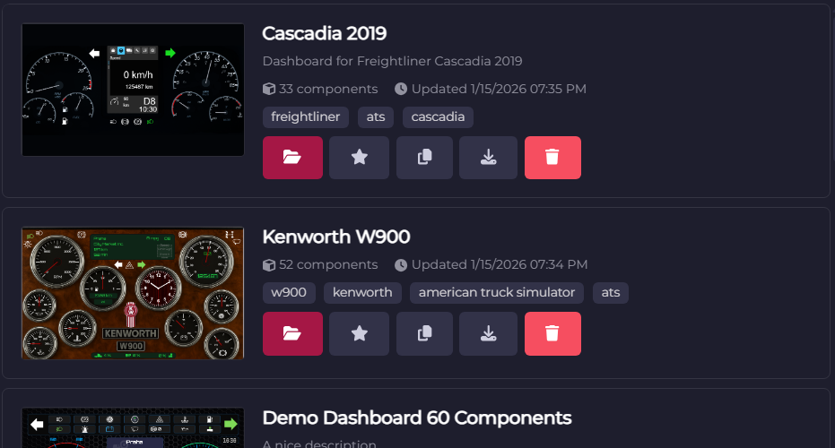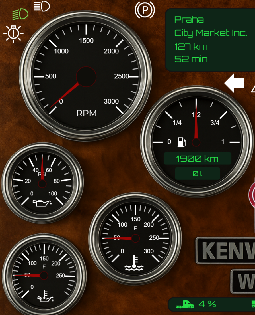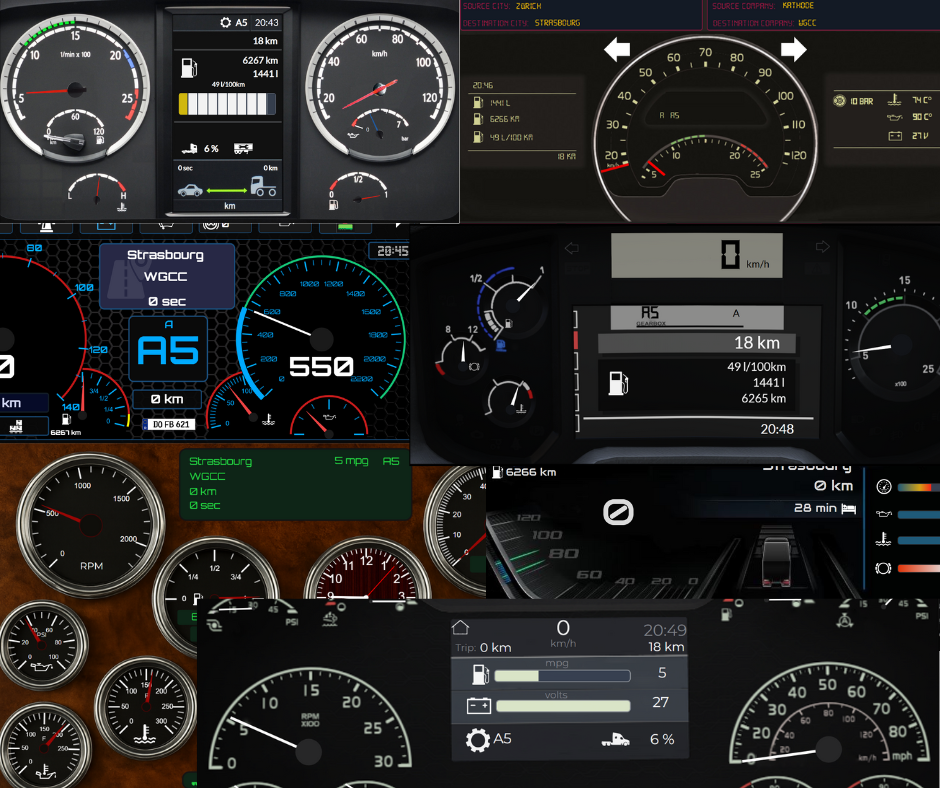 Together with high-quality backgrounds from existing or custom-designed dashboards, you can create faithful reproductions of real or in-game truck dashboards.