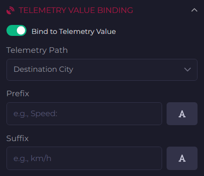 - Formatted Values: Add units, prefixes, suffixes (e.g., “Speed: {speed} km/h”)