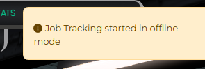 When the job tracking starts and you see this message – a yellow alert with the exclamation point instead of the green alert, your job is tracked offline.