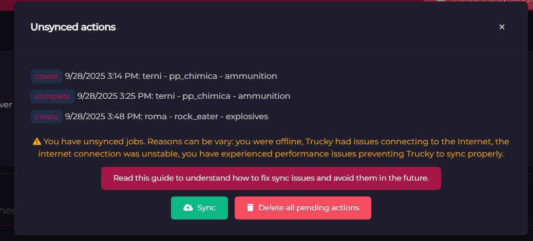 Trucky tries to sync pending actions with the VTC Hub at every application start.